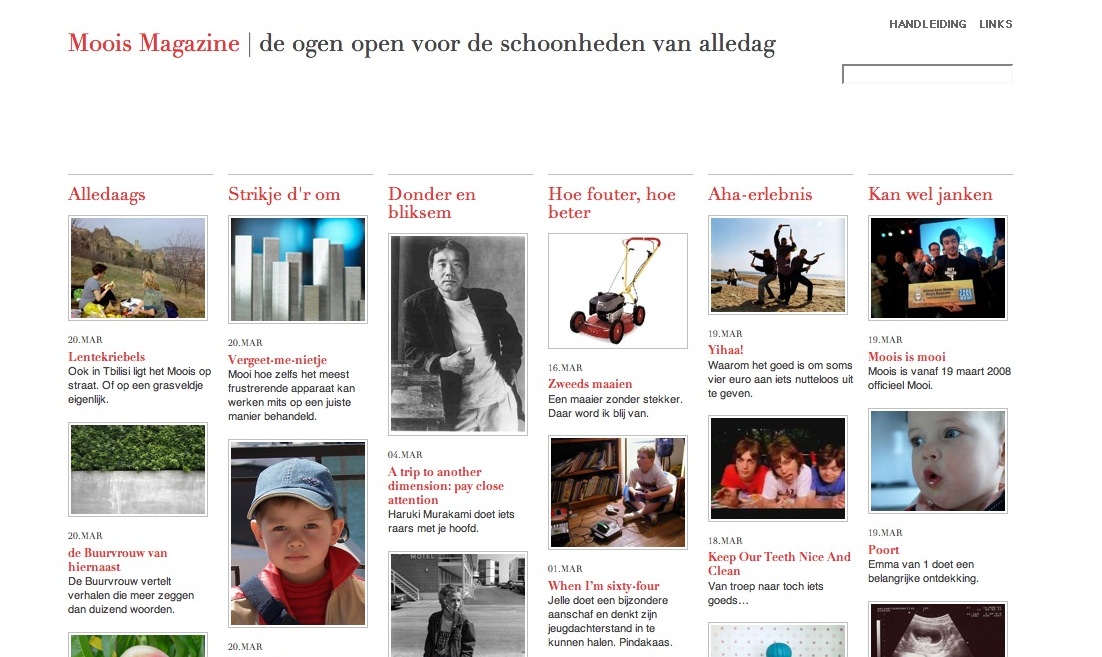 Op 20 maart zijn de “Dutch Bloggies” uitgereikt voor de beste weblogs. Moois magazine is uitgeroepen tot beste weblog. Ik vind hem erg mooi en wil deze blog dus ook even onder de aandacht brengen.